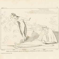 - Dante upon hearing the fatal love affairs of Francesca of Rimini and Paul falls fainted at her feet (Chapter V. Plate 6)