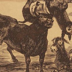 - The Moors use donkeys as a barrier to defend themselves against the fire bull (Tauromaquia Plate 17)