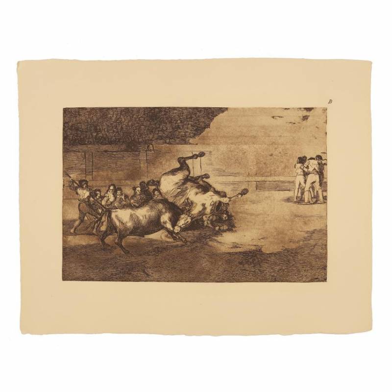 - Caballero derribado por un toro (Tauromaquia B)